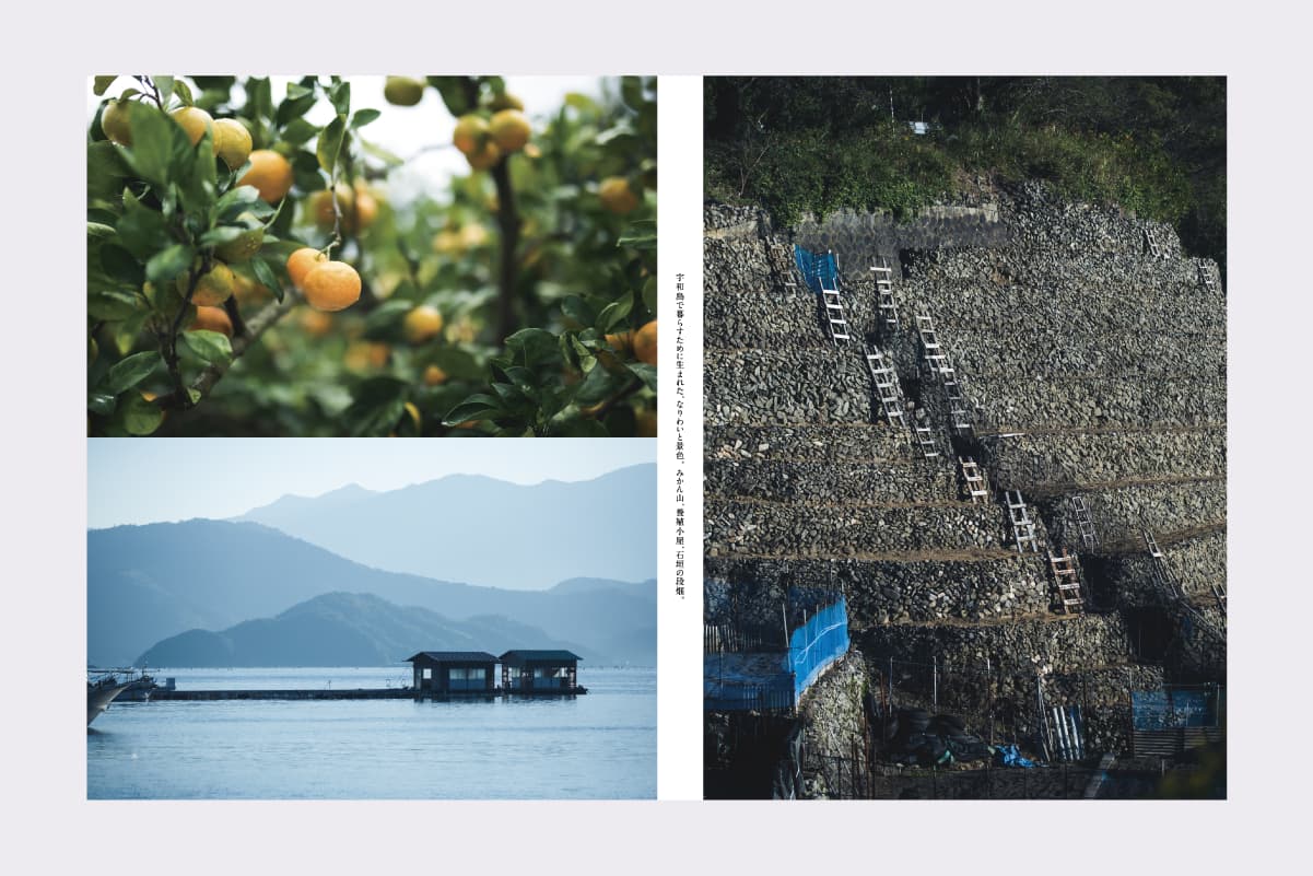 日常の中にある「幸福感」こそが宇和島「らしさ」。これらを冊子の中で表現するために、“作られたシーン”を用意しないことを重視して撮影に取り組みました。限りなく日常に近い状態の中で市民の方々の“素の反応”を捉え、市内の日常や暮らす人たちの飾らない表情が投影されるようにしています。日頃本当にその時間にある瞬間にひっそりと立ち会い、人々の自然で何気ない交流から、宇和島に宿る「人とまじわう」喜び・豊かさを感じ取っていただけるように構成しています。